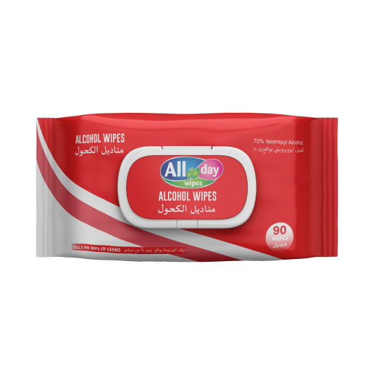 All day alcohol wipes consists of 70% IPA to ensure through germ free cleaning. A perfect disinfectant for your daily use.