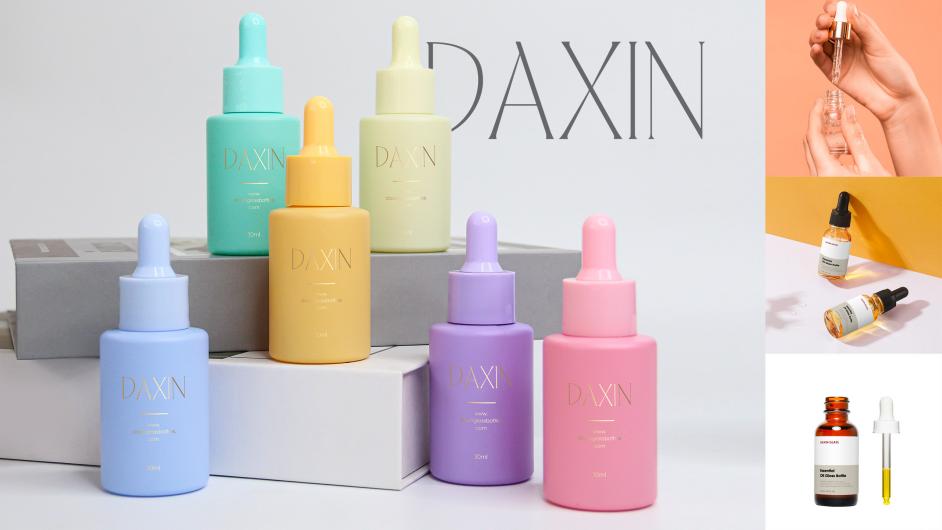 The DAXIN dropper bottles are a vibrant and practical addition to skincare packaging. Available in a spectrum of pastel colors, these bottles are designed for easy dispensing of liquids with precision.